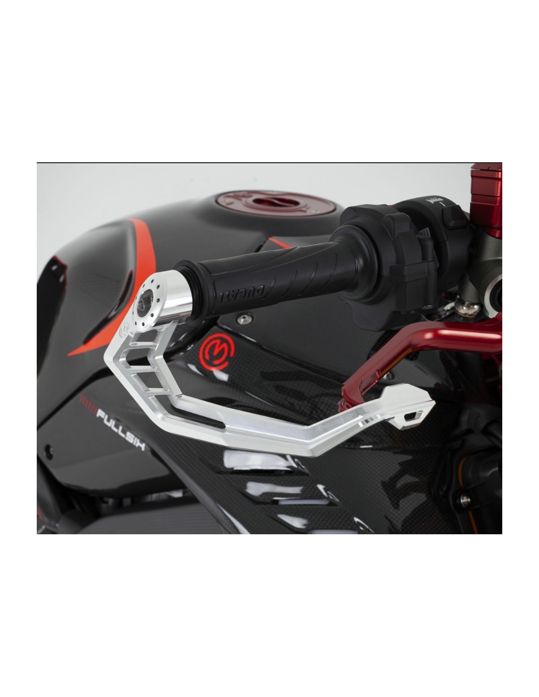La protezione leva freno anteriore Motocorse è stata ideata per moto stradali e da pista; è ricavata in alluminio (Anticorodal) dal pieno, realizzata mediante l'utilizzo di macchine a controllo numerico a 5 assi e rifinita superficialmente tramite ossidazione anodica in cinque differenti colorazioni: Argento, Nero, Rosso, Oro e Blu.