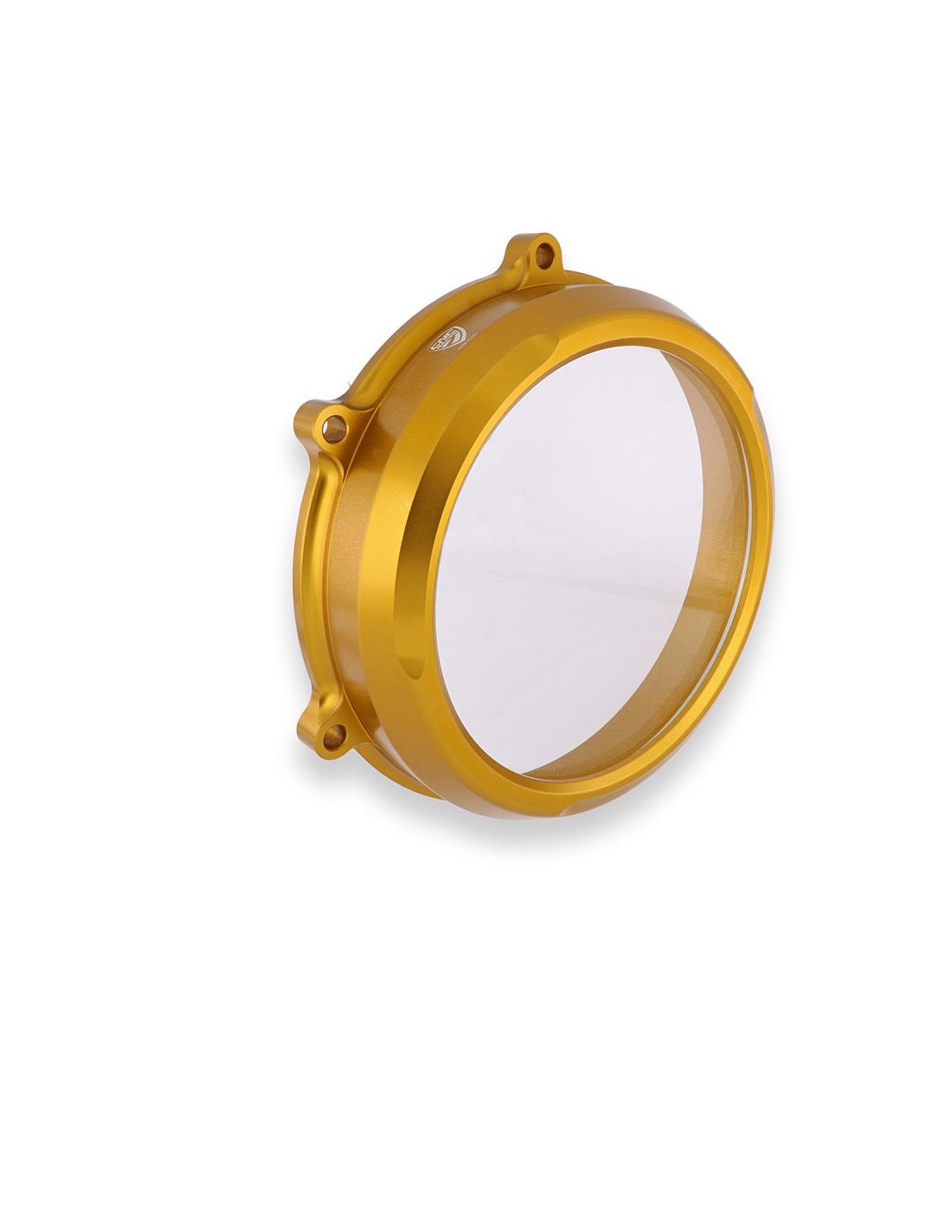 Carter trasparente per frizioni ad olio Ducati Diavel V4, realizzato in alluminio lavorato dal pieno.
