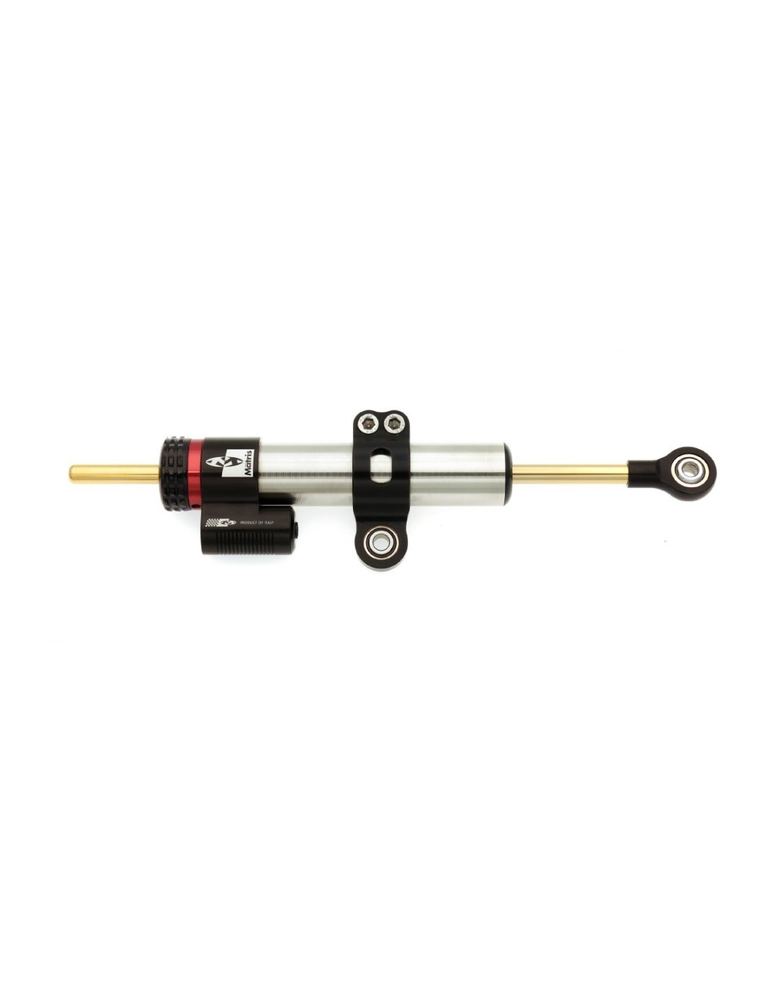 Tutti i componenti sono lavorati dal pieno con precisione CNC, utilizzando leghe di Alluminio ad alta resistenza e leggerezza (nessun pezzo è forgiato).Le moderne moto sportive, con passo corto e motori ad alte prestazioni, sono per natura più inclini a movimenti nervosi, indipendentemente dal design del telaio o delle sospensioni.Gli ammortizzatori di sterzo SDR e SDK migliorano il controllo dellasse anteriore, smorzando tutte le oscillazioni, i rapidi cambi di direzione, i bruschi e improvvisi movimenti della ruota anteriore e le vibrazioni, garantendo maggiore sicurezza alle alte velocità e nelluso sportivo. Sistema a doppio tubo coassiale con cilindro esterno in Titanio e cilindro interno in Alluminio. Stelo pistone mono-asta in Acciaio ad alta resistenza, con rivestimento in cromo duro e finitura lappata che garantiscono efficacemente un attrito zero. Il serbatoio esterno pressurizzato con Azoto migliora la dissipazione del calore per una maggiore stabilità alle alte temperature di esercizio, compensando gli effetti di espansione del fluido.