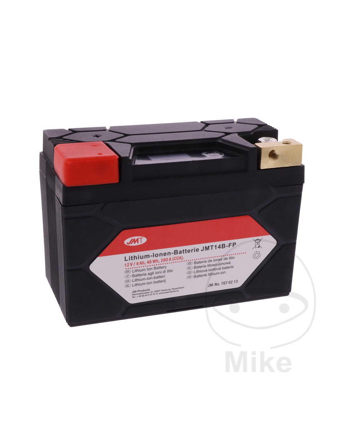 Per questo motivo, le versioni al litio delle batterie JMT richiedono solo 1/3 della capacità di una batteria al piombo comparabile per la stessa potenza di avviamento. Un processore incorporato ("balancer") assicura inoltre uno stato di carica uniforme per tutte le celle.