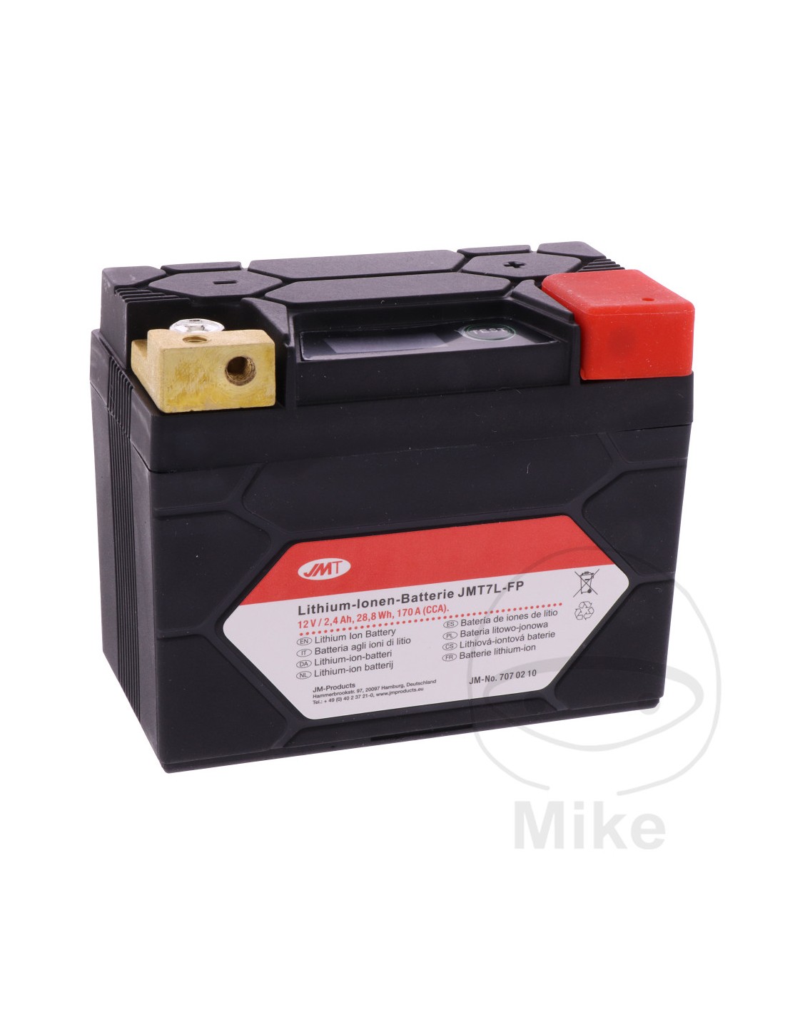 Per questo motivo, le versioni al litio delle batterie JMT richiedono solo 1/3 della capacità di una batteria al piombo comparabile per la stessa potenza di avviamento. Un processore incorporato ("balancer") assicura inoltre uno stato di carica uniforme per tutte le celle.