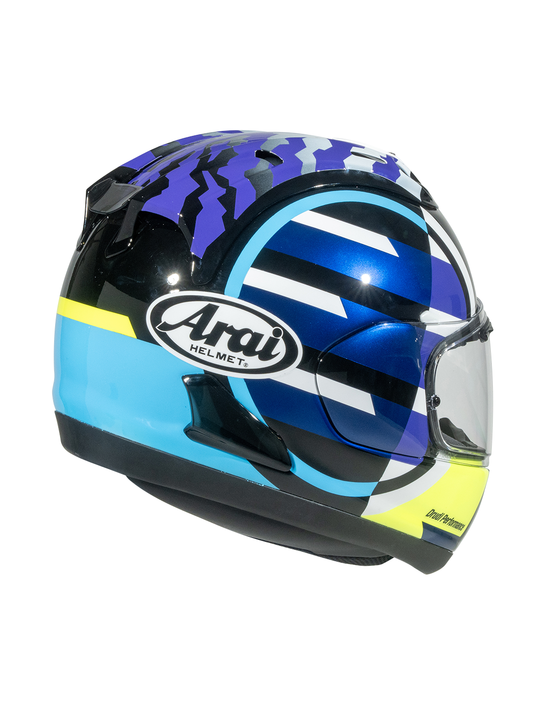 RX-7V Evo è omologato secondo la nuova normativa ECE 22.06. Arai ha applicato le sue tecnologie più avanzate, come la visiera VAS, un avanzato sistema di ventilazione e l'imbottitura interna FCS. Il concetto di R75 Shape che consiste nell'offrire una calotta esterna (struttura esterna) più resistente, più arrotondata e più liscia.