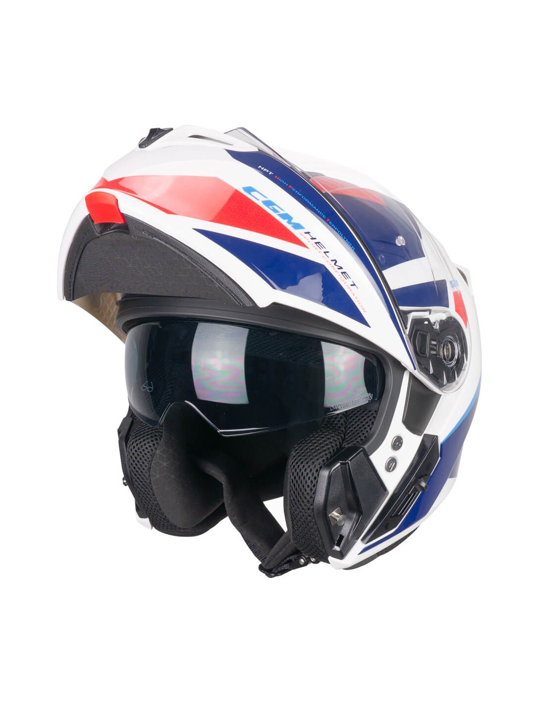 La visiera esterna basculante, a sgancio rapido e con blocco in posizione chiusa è predisposta Pinlock 70 mentre la visiera interna parasole a scomparsa aiuta il pilota a adattarsi a differenti condizioni di luminosità. Il set di interni termoformati esagonali è realizzato con tessuto extracool, prevede un apposito alloggio per le aste degli occhiali. La predisposizione interfono di questo modello è caratterizzata da un alloggio per il corpo auricolare e un sostegno per l'asta del microfono. La fibbia micrometrica e l'elastico tricolore fermacinturino completano le equipaggiamenti di fascia alta del casco.
