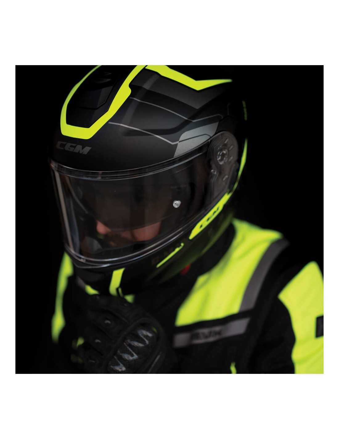 Con sistema di ventilazione Air Stream System a tre zone e canalizzazione interna. Interni estraibili termoformati esagonali per un miglior comfort di calzata, dal tessuto ExtraCool con bande riflettenti per aumentare la sicurezza passiva e con predisposizione per interfono, l'imbottitura interna è realizzata con un apposito alloggio per le aste degli occhiali. Completano le dotazioni deflettore paranaso, deflettore paramento ed elastico fermacinturino.