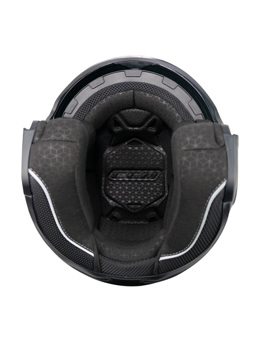 L'AIR STREAM SYSTEM integrato nel casco, costituito da una presa d'aria anteriore abbinata ad un estrattore posteriore, mantiene stabile la temperatura in qualsiasi condizione massimizzando il flusso d'aria all'interno del casco. Gli interni e guanciali realizzanti con tessuto EXTRACOOL, sono removibili e lavabili, ingegnerizzati per permettere l'uso di occhiali e impreziositi dalle bande alta visibilità per aumentare la sicurezza passiva. Completano le dotazioni del casco la predisposizione per l'installazione di interfono, l'anello antifurto al cinturino, l'elastico ferma cinturino e la fibbia micrometrica. Peso medio calotta piccola 1300gr, peso medio calotta grande 1380gr.
