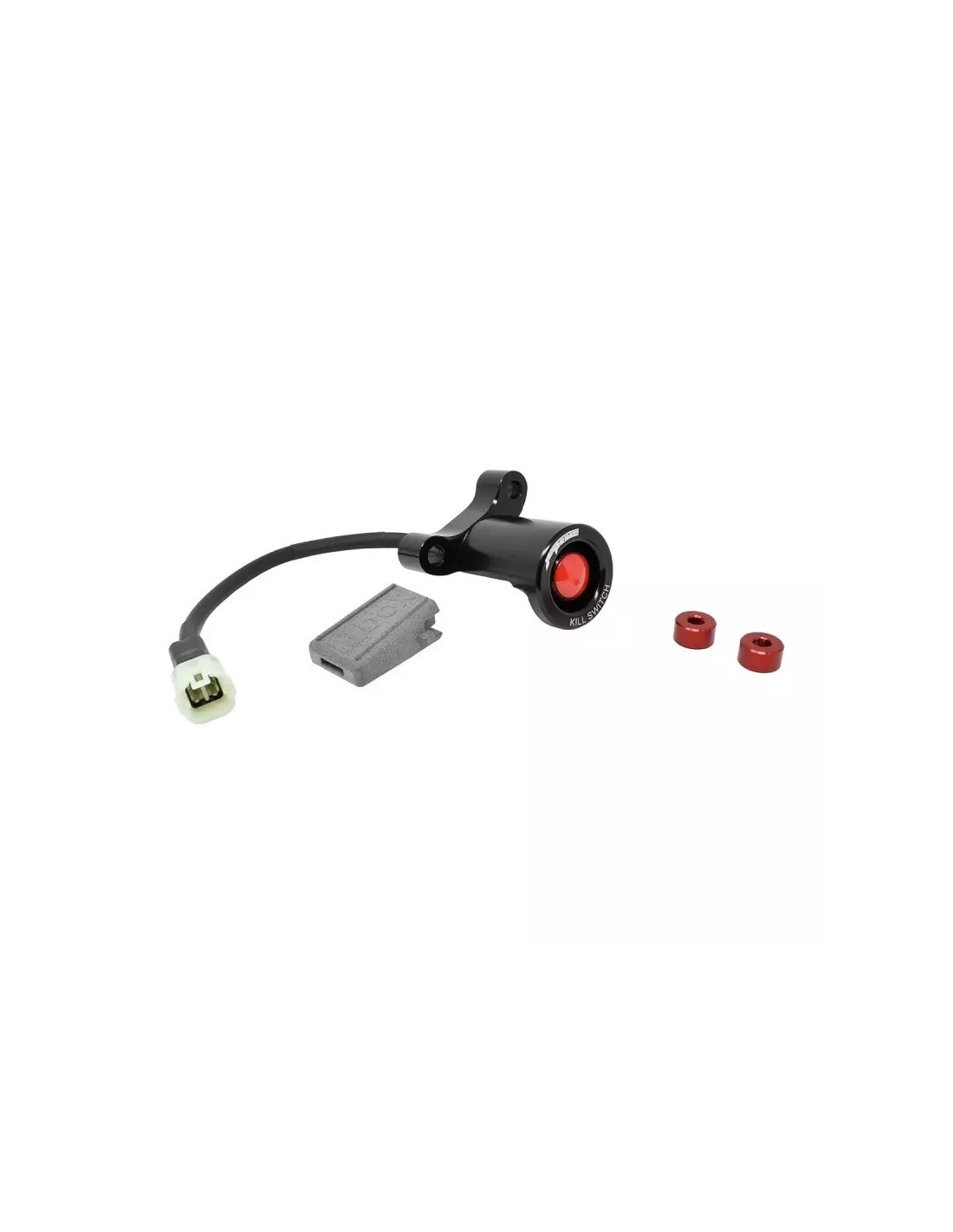 Il nostro kit denominato Kill Switch ha la funzione di sostituire il blocco chiave sulle moto per uso racing. Viene fornito in abbinamento con il Key Box dove viene alloggiata la chiave originale della moto insieme alla sua antenna. In questo modo non avrete più bisogno di utilizzare la chiave e la serratura originale, con un risparmio di 350 grammi circa .