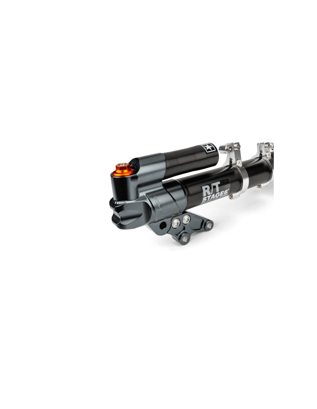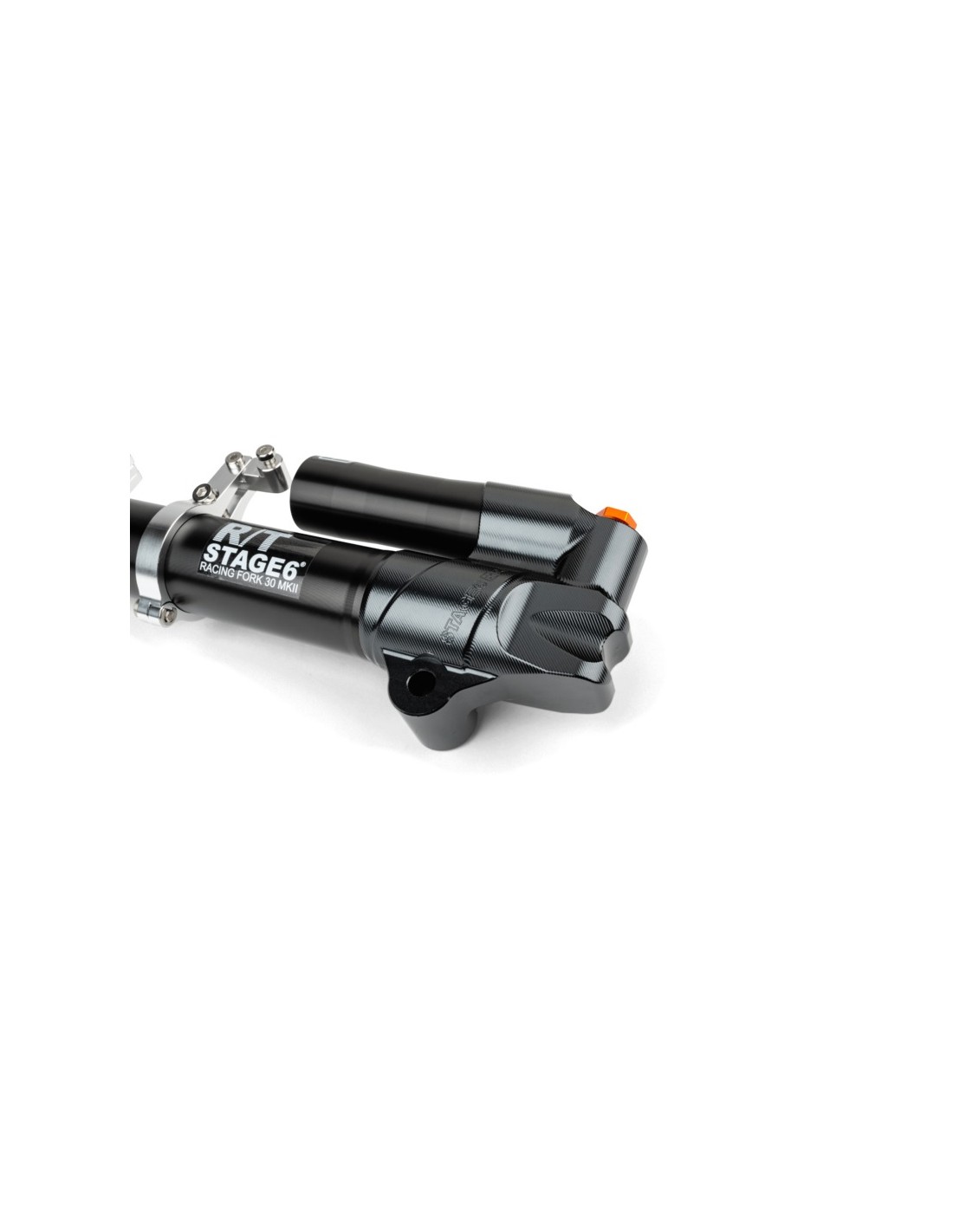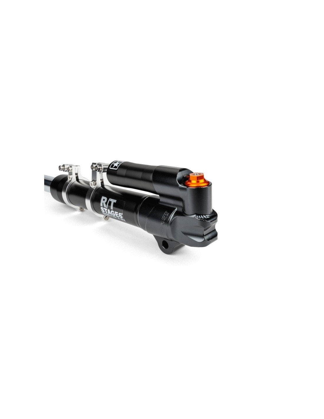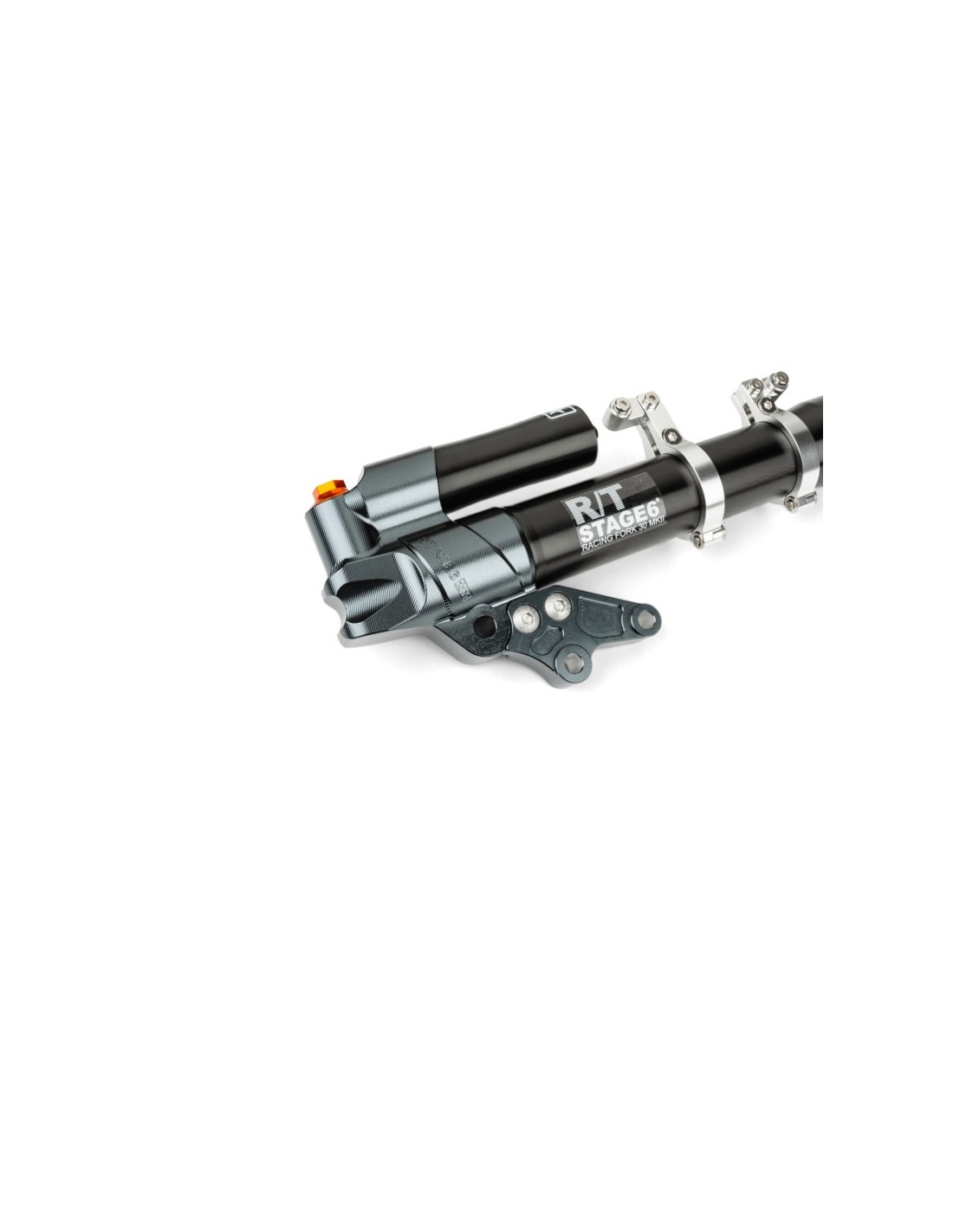Entrambi i tubi della forcella sono lavorati con precisione grazie alla tecnologia di fresatura CNC e rifiniti in nero o grigio anodizzato, con accenti arancioni suli registri di regolazione. Ogni tubo della forcella Stage6 è inoltre dotato di un serbatoio esterno, che migliora le prestazioni e la costanza anche nelle situazioni più impegnative.