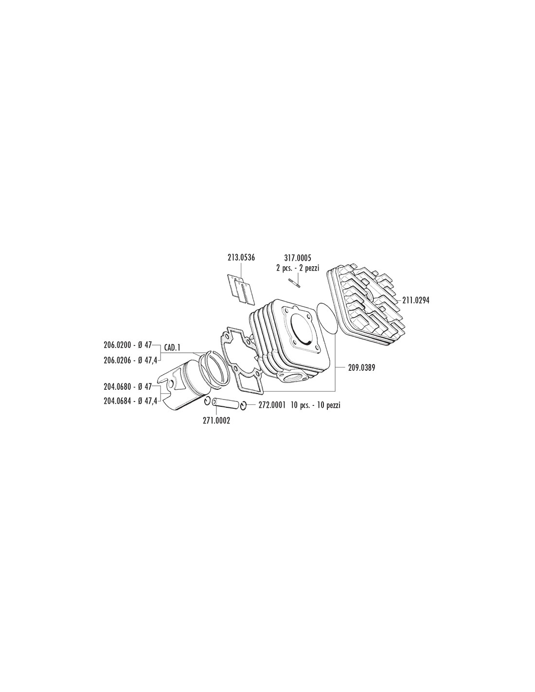 Gruppo Termico Polini 140.0181 47mm 70cc per Piaggio Gilera AC 50 2T