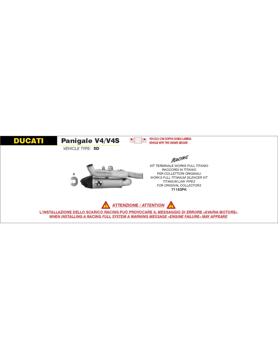 Terminale Scarico Arrow Works in Titanio con fondello in carbonio per Ducati Panigale V4S 2025