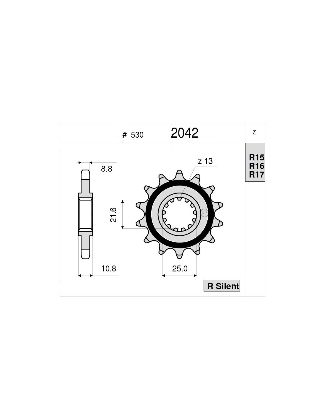 362042016 PIGNONE OE ACCIAIO senza Gomma 530 Z16